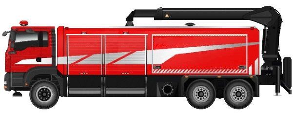 多車模塊化組合,具有1臺(tái)吸水增壓車和2臺(tái)水帶敷設(shè)車組合而成