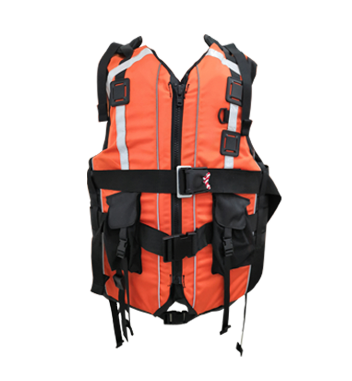 面料采用方形針織壓力點(diǎn)和1680D材質(zhì)的Cordura?面料使得該款救生衣足夠應(yīng)對(duì)復(fù)雜的水域活動(dòng)。采用背心式設(shè)計(jì),胸襟采用YKK塑鋼開口拉鏈,并使用塑料拉頭浮力片固定于布料夾層內(nèi),后領(lǐng)口增加手提式松緊提拉帶設(shè)計(jì),方便于攜帶。