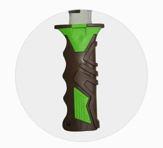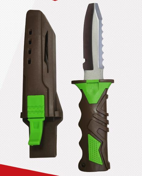 刀背帶鋸齒設(shè)計(jì),帶缺口,無刀頭,帶快卡扣,硬塑料刀鞘手柄帶護(hù)口。