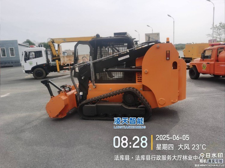 森林隔離帶開辟車是由隔離帶開辟機模塊、大型鈍刀式切削模塊、重型林木抓斗、鏟斗、快換機構(gòu)、履帶式行走機構(gòu)、臂架舉升裝置、駕駛室、電氣液壓系統(tǒng)和無線遙控器組成。設(shè)備應(yīng)采用雙三角形履帶式行走機構(gòu),具備建造防火隔離帶的能力,可粉碎樹 木、灌木、草等各種可燃性植物,能在茂密的樹林、灌木林、草原中迅速開辟防火隔離帶。可粉碎的樹木直徑≥ 250mm,連續(xù)粉碎時可粉碎的樹木直徑≥80mm,可粉碎的樹木、灌木和草的高度沒有限制。在山地林區(qū)開辟防火隔離帶、維護防火通道、開辟臨時救援通道、建立安全島、輔助清理火場、開設(shè)生土隔離帶等應(yīng)急救援任務(wù)。