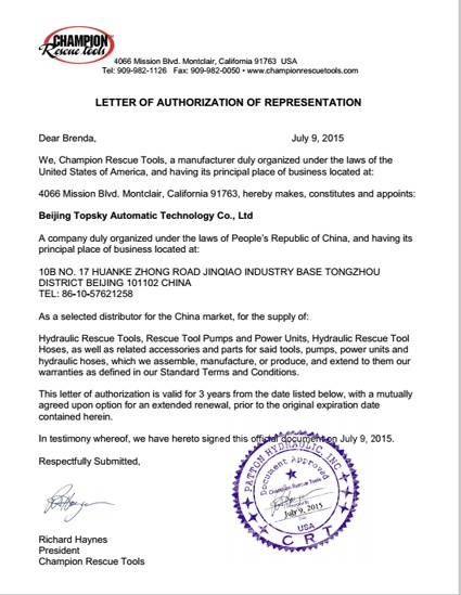 2015年7月9日,北京凌天成為美國(guó)CHAMPION公司八爪魚(yú)破拆工具組總代理