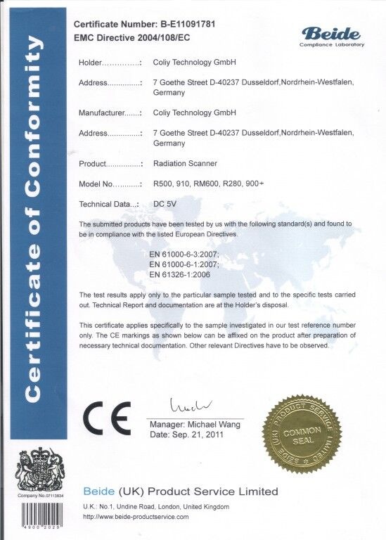 擾,具有安全校準功能,可避免校準人員的輻射接觸。產品有歐洲 CE 認證,EMC 認證和