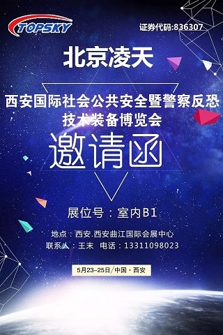 2017年5月23日-25日,西安國(guó)際社會(huì)公共安全暨警察反恐技術(shù)裝備博覽會(huì)將在西安曲江國(guó)際會(huì)展中心盛大召開。屆時(shí),北京凌天將集中展示警用無(wú)人化作戰(zhàn)系列裝備、偵查反偵查、安檢排爆、反恐處突等系列高精尖警用裝備。