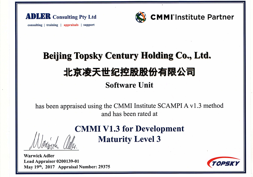 CMMI認(rèn)證的取得是北京凌天在高科技裝備發(fā)展的一次重要的里程碑,標(biāo)志著凌天在軟件設(shè)計、開發(fā)、項目管理及為用戶提供高質(zhì)量產(chǎn)品方面達到了國際化水平。
