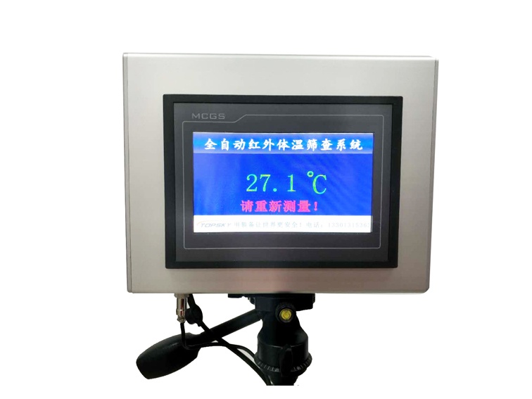 全自動紅外體溫篩查系統是由非接觸式紅外探頭,傳感器,光 學系統,智能檢測控制系統,高清7寸觸摸顯示屏等部分組成.能夠 在不接觸人體的情況下,依據人體發(fā)射紅外輻射強度,轉換成實際 的溫度數值,并通過人機交互界面進行顯示和報警.高清屏幕顯示, 可保證測量結果清晰可見,高溫聲光報警有助于工作人員快速篩 查可疑人員;該產品可以同三腳架搭配 使用,方便攜帶和快速部署,可應用于機 場、港口、車站、學校、賓館和醫(yī)院等 公共場所的體溫篩檢;