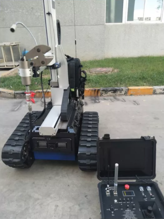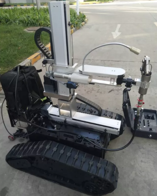 破拆機(jī)器人,也可用于遠(yuǎn)程遙控偵察人難以達(dá)到的地形的一種機(jī)器人。機(jī)器人配備十字滑臺,靈活調(diào)動工具的工作位置,可加載手持式切割機(jī),還可以加載獨(dú)立電動液壓工具其包括:微型開門器、微型擴(kuò)張器、微型剪切器之間可以靈活更換,底盤采用履帶結(jié)構(gòu),能適應(yīng)各種地形快速作戰(zhàn)部署。