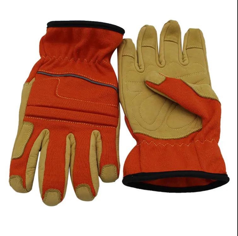 采用3D立體設(shè)計,符合人體手型自然彎曲,手掌指尖一片式翻轉(zhuǎn)手指背,主體顏色為橘紅色和黃色,主要材質(zhì)為牛皮和芳綸雙面針織布,總體性能符合《GA633-2006消防員搶險救援服裝》的標準。