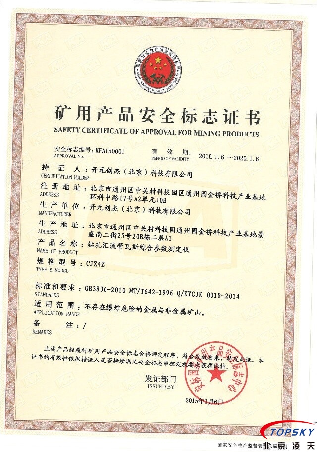 3測(cè)定儀的本安參數(shù): Ui: DC19.2V,Ii:250mA, Ci:0uF, Li: 0mH。