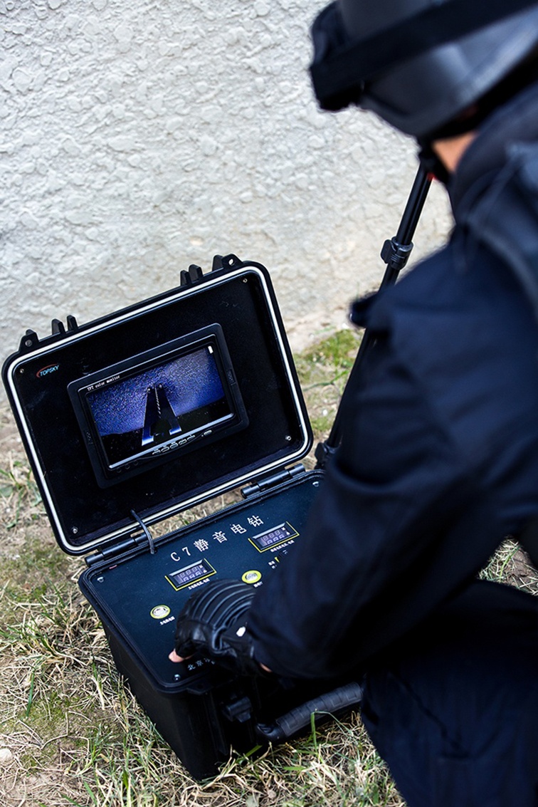 整套完整的系統(tǒng)裝在一個(gè)攜帶箱內(nèi),可以迅速安裝設(shè)置,操作簡便。在反恐行動中,對房間內(nèi)部情況的了解至關(guān)重要。靜音電鉆可以在不被犯罪分子察覺的情況下在墻上鉆孔,然后伸入蛇眼探頭觀察房間內(nèi)部狀況。