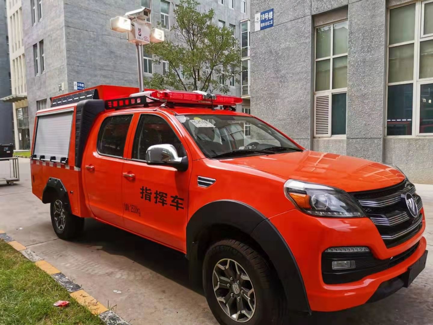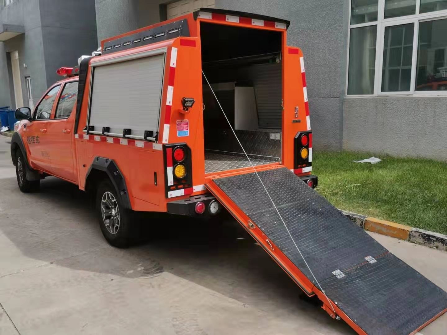 專門為特種機(jī)器人量身定做的一款機(jī)器人運(yùn)輸車,由皮卡車改裝,區(qū)別于傳統(tǒng)意義上大型運(yùn)輸車,體積更小,動(dòng)力更足。車廂設(shè)計(jì)有升降照明系統(tǒng),解決了救援現(xiàn)場(chǎng)能見(jiàn)度低的問(wèn)題,1.2-1.8米升降高度,可滿足不同照明需求。車體頂部裝有4G圖像傳輸系統(tǒng),可將現(xiàn)場(chǎng)情況實(shí)時(shí)傳輸?shù)街笓]部,有利于指揮現(xiàn)場(chǎng)調(diào)度。配有一體化機(jī)器人裝運(yùn)梯,最大承壓≥600Kg。后箱四周配有一圈小型照明系統(tǒng),可用于晚間或光線昏暗等環(huán)境。后箱設(shè)計(jì)有獨(dú)立儲(chǔ)物架,可放置機(jī)器人配套設(shè)備。兩側(cè)卷閘窗設(shè)計(jì)方便拿用。