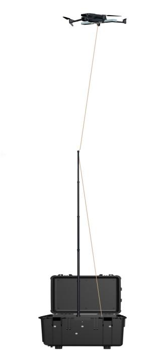 ?無人機能通過系留供電設備實現(xiàn)空中系留懸停,可持續(xù)為無人機供電;