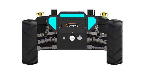 差速輪式機(jī)器人底盤采用鋰電池電源作為機(jī)器人動(dòng)力源,使用無(wú)線遙控的方式遠(yuǎn)距離操控機(jī)器人,并可定制復(fù)雜的操作模式,主控提供串口/標(biāo)準(zhǔn)CAN總線作為通訊接口。整機(jī)采用四輪獨(dú)立驅(qū)動(dòng)、四輪差速轉(zhuǎn)向以及前后雙橫臂獨(dú)立懸架結(jié)構(gòu),具有IP65防塵防水能力,能夠在多種復(fù)雜環(huán)境運(yùn)行。同時(shí),整機(jī)采用模塊化設(shè)計(jì),四獨(dú)立懸掛、左右電控箱及電池可快速拆卸維護(hù)更換??纱钶d多種設(shè)備從而代替人進(jìn)行高效率作業(yè)。