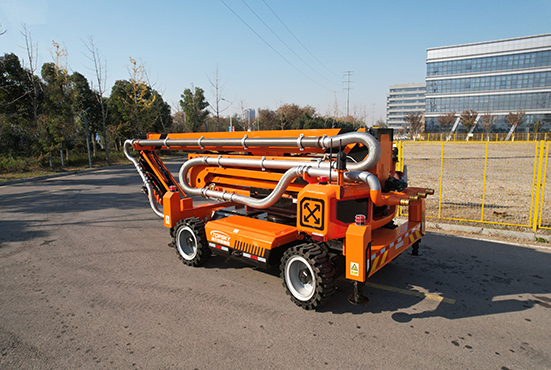 具有液壓調(diào)平支腿,臂架作業(yè)時保證整機水平,防止發(fā)生傾翻,以及支腿安全報警,車體傾斜報警,舉升避障、舉升限制、上下互鎖、風速報警等安全保護功能,進一步提升機器人舉高噴射作業(yè)安全性。