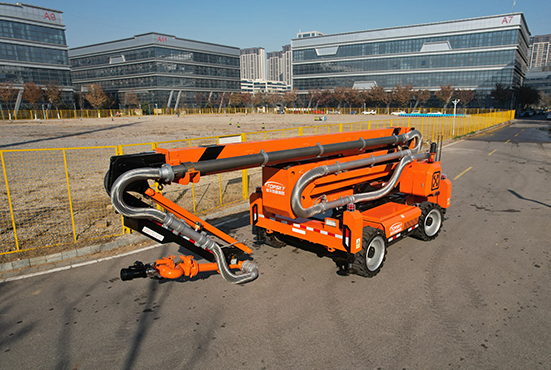進行滅火消防炮噴射作業(yè)時最大高度可達20.5米,最大水平延伸可達11米,實現(xiàn)凌空對火場的高空壓制噴射需求。