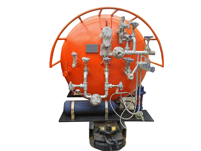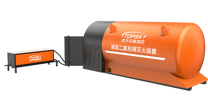 液態(tài)二氧化碳滅火裝置,采用平板車為運(yùn)載平臺(tái),搭載液態(tài)二氧化碳滅火模塊,采用液態(tài)二氧化碳為滅火劑,運(yùn)輸至井下火區(qū)近附,經(jīng)自增壓調(diào)控系統(tǒng)實(shí)現(xiàn)罐內(nèi)穩(wěn)壓,并通過遠(yuǎn)距離輸送管路將液體從罐內(nèi)向密閉火區(qū)噴射,利用其急速膨脹氣化和吸熱效率高的物理特性,可實(shí)現(xiàn)惰性降氧,吸熱降溫,吸附阻化等功能,從而可快速進(jìn)行井下煤層自燃火災(zāi)的預(yù)防與撲滅等。