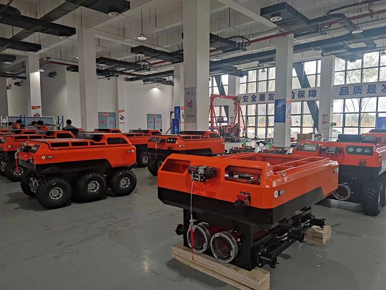 采用6×6輪式底盤,液壓驅動,裝有真空輪胎,另加配水下推進器,增加水中行進效率,水陸兩棲,可全地形行駛;