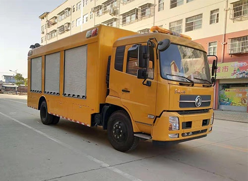 采用東風(fēng)底盤,排半可翻轉(zhuǎn)式駕駛室,帶導(dǎo)流罩,東風(fēng)康明斯發(fā)動(dòng)機(jī),功率132kw,國六排放標(biāo)準(zhǔn);軸距4700mm;鋼絲輪胎,原廠空調(diào)、原廠液壓方向助力,原廠ABS,原廠隨車工具。最大涉水深度600mm