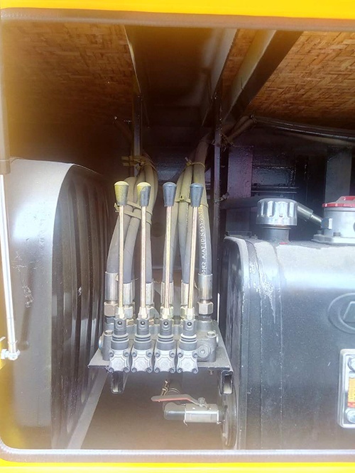 輛安裝四只液壓支撐腿,可在駐車狀態(tài)均分車輛靜壓,保護(hù)車輪及彈簧鋼板。選用進(jìn)口優(yōu)質(zhì)意大利多路閥組,液壓支撐缸采用進(jìn)口密封件,單缸靜載荷5噸,加裝雙向液壓鎖。