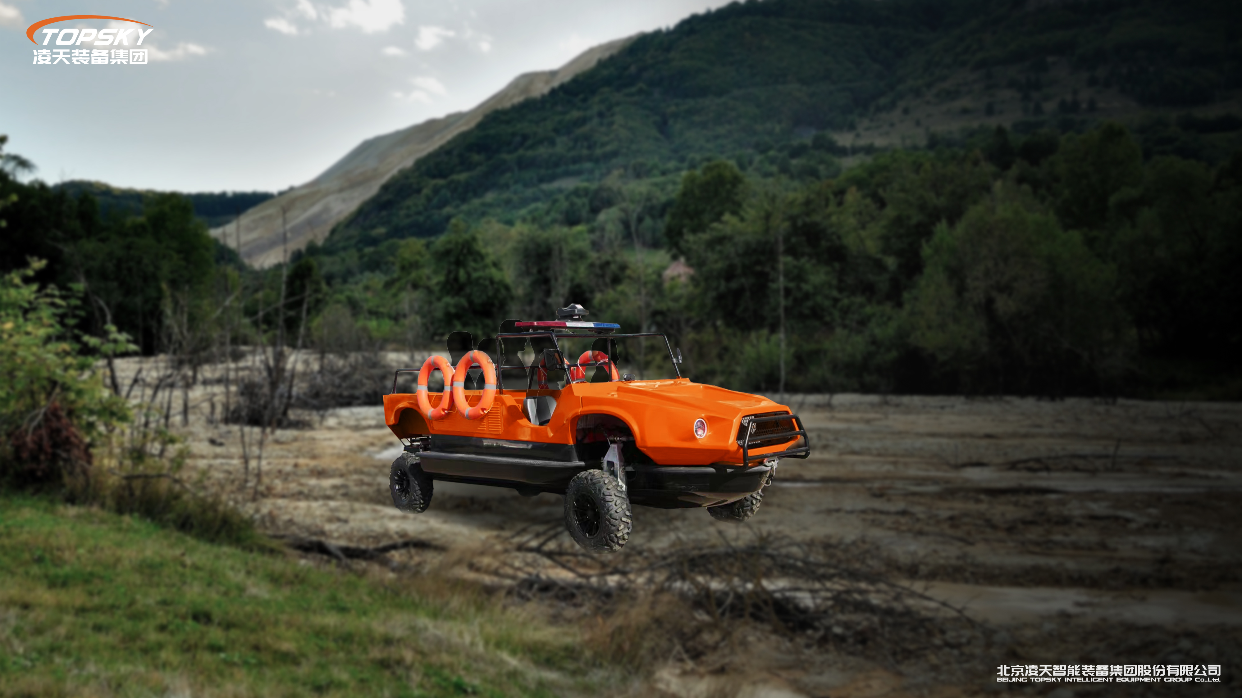 在復(fù)雜惡劣的地形條件和自然環(huán)境下,水陸兩棲車可以讓搜救隊員和攜帶的救援裝備快速到達救援現(xiàn)場,減少徒步帶來提供消耗,完成最后一公里最好五分鐘緊急救援任務(wù)。水陸兩棲車可配備點到絞盤、救援擔(dān)架組件、探照燈、警示燈、警報器、脫鉤、破拆工具等裝備, 給救援團隊提供救援保障,更安全的解救傷員和疏散群眾。