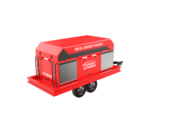 消防無(wú)人機(jī)壓縮空氣泡沫拖車,采用中置軸掛車為運(yùn)載平臺(tái),搭載我司自主研發(fā)的水帶系留式重型消防滅火無(wú)人機(jī)和壓縮空氣泡沫系統(tǒng)(CAFS),自帶水和泡沫滅火劑,具備高效滅火(高效泡沫隔離、冷卻、窒息)、高空破窗,自動(dòng)避障、展開(kāi)快速、精準(zhǔn)鎖定火源、多角度控制火點(diǎn)、空中作戰(zhàn)時(shí)間長(zhǎng)等特點(diǎn)。機(jī)身采用純碳纖維和航空鋁材料制作而成,減輕機(jī)身自重同時(shí)提高物質(zhì)載重量,該無(wú)人機(jī)具備陸空兩棲功能,可以在地面行駛,行走系統(tǒng)可快拆;可噴射水及壓縮空氣泡沫,使用超輕型浮力水帶噴射的壓縮空氣泡沫密度更輕,可以能快速啟動(dòng)升空,拖帶水帶升至高空,系統(tǒng)操作穩(wěn)定性更強(qiáng)。