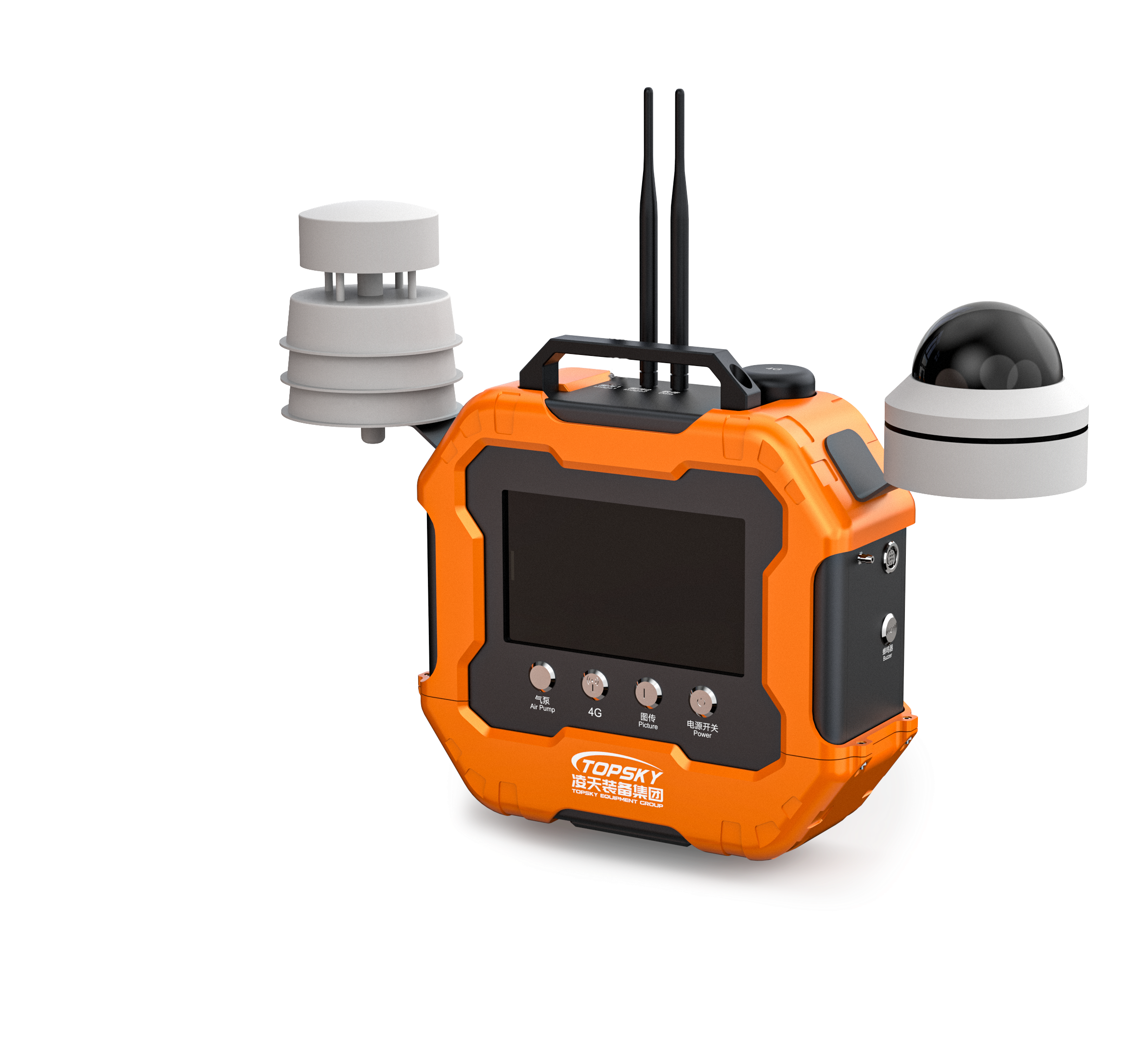 現(xiàn)場(chǎng)采集終端可同時(shí)連續(xù)檢測(cè)12種氣體的濃度、氣象數(shù)據(jù)(風(fēng)向、風(fēng)速、溫度、濕度)、粉塵濃度(PM2.5、PM10)、Gamma輻射強(qiáng)度和現(xiàn)場(chǎng)實(shí)時(shí)視頻。將采集到的氣體數(shù)據(jù)、GPS位置、環(huán)境參數(shù)、視頻畫(huà)面等數(shù)據(jù)通過(guò)無(wú)線技術(shù)傳送至遠(yuǎn)程終端查看;同時(shí)通過(guò)4G傳輸將采集到的氣體數(shù)據(jù)、GPS位置、環(huán)境參數(shù)上傳至監(jiān)管后臺(tái)實(shí)現(xiàn)無(wú)線管理;現(xiàn)場(chǎng)采集終端也可以實(shí)現(xiàn)現(xiàn)場(chǎng)實(shí)時(shí)數(shù)據(jù)一鍵打印功能。儀器具有氣體濃度調(diào)校標(biāo)定、濃度值超限報(bào)警功能、氣象數(shù)據(jù)超限報(bào)警、STEL超限報(bào)警和TWA超限報(bào)警,一旦設(shè)備采集數(shù)據(jù)濃度值超限,設(shè)備立即開(kāi)啟聲光振動(dòng)報(bào)警進(jìn)行警示,并將此時(shí)數(shù)據(jù)同步至遠(yuǎn)程終端和上傳至平臺(tái)??蓪⒍嗯_(tái)探測(cè)儀的監(jiān)測(cè)、監(jiān)控信息上傳,并建立特殊作業(yè)場(chǎng)所多功能監(jiān)測(cè)監(jiān)控系統(tǒng)平臺(tái),保障作業(yè)人員的安全。采用新一代主流外觀設(shè)計(jì),周身環(huán)繞保護(hù)套美觀耐用。儀器底部留有三腳架安裝孔,作業(yè)時(shí)便于儀器快速安放、部署,適用于多種復(fù)雜場(chǎng)合工作。
