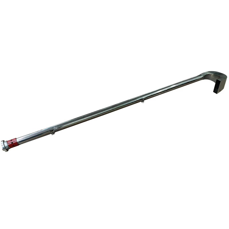 泡沫鉤管是一種移動(dòng)式泡沫滅火設(shè)備,用以產(chǎn)生和噴射空氣泡沫,撲救沒(méi)有固定泡沫滅火裝置的地下、半地下和小型油罐的油類和汽油火災(zāi)。泡沫鉤管由管牙接扣、空氣泡沫產(chǎn)生器、泡沫管三個(gè)部分組成。鉤管其上部有彎形噴管,用以鉤在著火的油罐壁上,向罐內(nèi)噴射泡沫。其下端為空氣泡沫產(chǎn)生器,裝有65毫米管牙接扣,用水帶連接,輸送空氣泡沫混合液。當(dāng)泡沫混合液混合經(jīng)過(guò)多孔板通過(guò)錐管逐漸擴(kuò)散,形成良好的空氣泡沫,并從彎形噴管噴出,撲救火災(zāi),操作簡(jiǎn)單方便。