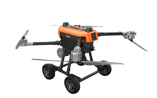 本無人機為北京凌天智能裝備集團研發(fā)的陸空兩棲三維偵測建模無人機,采用四旋翼機身設(shè)計,載重大,續(xù)航長,并且機體折疊標準化負載接口。同時,該無人機具備陸空兩棲功能,可以在地面行駛。