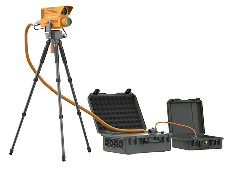 光學(xué)破拆裝置內(nèi)置高能光纖激光器,能夠從地面發(fā)射激光對鋼板、鋁板、鋼筋、彩鋼瓦、樹木、塑料、馬蜂窩等進行遠距離切割清除。
