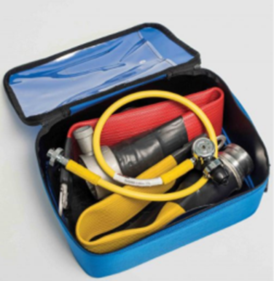 充氣管道救援套組的設(shè)計(jì)和開(kāi)發(fā)旨在提供一種簡(jiǎn)單而有效的方式,使用標(biāo)準(zhǔn)長(zhǎng)度的消防水帶提供下游安全吊臂或浮動(dòng)救援輔助設(shè)備。充氣管道救援套組充氣系統(tǒng)可使消防水帶兩端密封,尾部帶2個(gè)密封件,公頭末端為黃色,以便清晰識(shí)別并在使用時(shí)增加可視性。該系統(tǒng)的工作壓力為1.5巴,并使用系統(tǒng)提供的充氣套件進(jìn)行充氣,該系統(tǒng)配有預(yù)設(shè)3.5巴的壓力調(diào)節(jié)器。母頭的尾巴