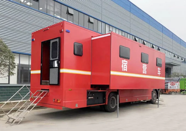 3、整車自行式設(shè)計,機(jī)動性能好,適合公路運輸,可提供野外宿營、洗漱、休閑等功能,保障能力強(qiáng);整車配有空氣調(diào)節(jié)系統(tǒng),生活舒適度好,可雙側(cè)擴(kuò)展,空間利用率大。