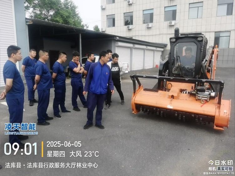 森林隔離帶開辟車是由隔離帶開辟機模塊、大型鈍刀式切削模塊、重型林木抓斗、鏟斗、快換機構(gòu)、履帶式行走機構(gòu)、臂架舉升裝置、駕駛室、電氣液壓系統(tǒng)和無線遙控器組成。設(shè)備應(yīng)采用雙三角形履帶式行走機構(gòu),具備建造防火隔離帶的能力,可粉碎樹 木、灌木、草等各種可燃性植物,能在茂密的樹林、灌木林、草原中迅速開辟防火隔離帶。可粉碎的樹木直徑≥ 250mm,連續(xù)粉碎時可粉碎的樹木直徑≥80mm,可粉碎的樹木、灌木和草的高度沒有限制。在山地林區(qū)開辟防火隔離帶、維護防火通道、開辟臨時救援通道、建立安全島、輔助清理火場、開設(shè)生土隔離帶等應(yīng)急救援任務(wù)。