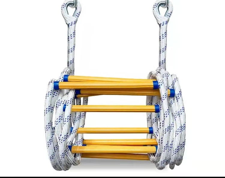 救生軟梯是一種用于營救和撤離火場被困人員的移動式梯子,可收藏在包裝袋內(nèi),在樓房建筑物發(fā)生火災(zāi)或意外事故時(shí),樓梯通道被封閉的危急情況下,是進(jìn)行救生用的有效工具。