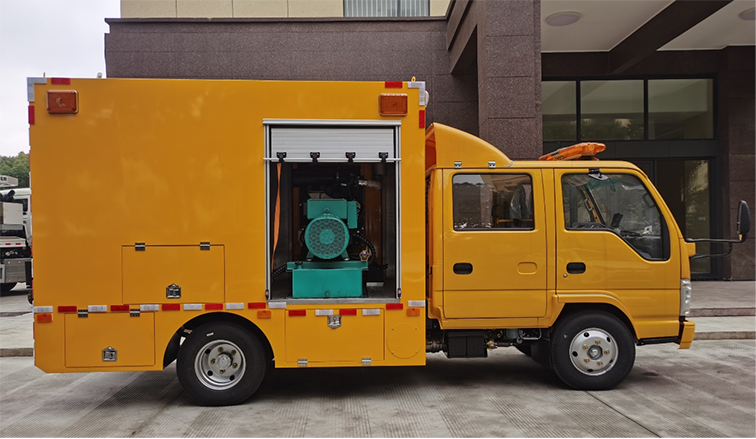 雙排座排澇車(1200m3),是在慶鈴二類汽車底盤的基礎(chǔ)上依據(jù)排水車的特點(diǎn),配置柴油發(fā)電機(jī)組、兩臺(tái)大流量便攜式潛水泵并整合照明設(shè)備等功能設(shè)計(jì)改裝成型的專項(xiàng)作業(yè)車,整車尺寸較小,通過性較強(qiáng),廣泛適用于各類搶險(xiǎn)現(xiàn)場。