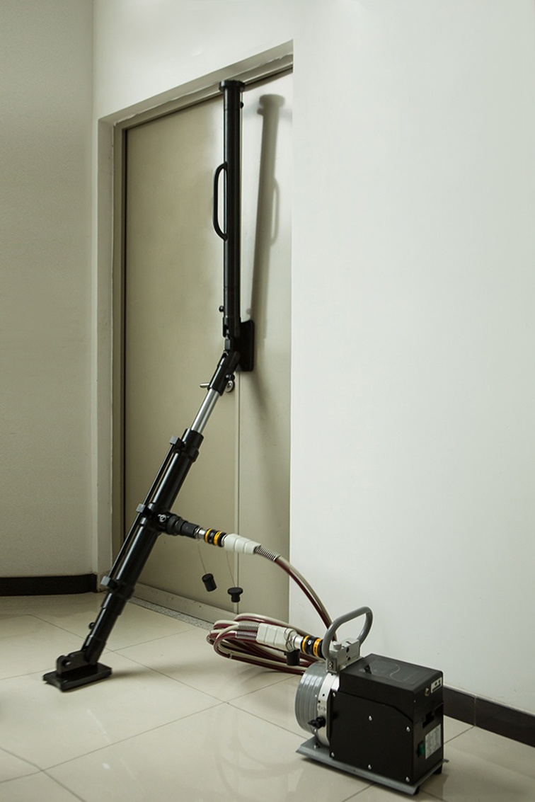 DB6重型電動液壓破門器是采用高強度復(fù)合材料制成,因此使其具有耐高壓、高溫、耐寒等特性,使其可以在各種復(fù)雜的環(huán)境下可以正常使用。高強度復(fù)合材料的機身,使其總體重量輕便,精美的結(jié)構(gòu)設(shè)計,使其做到了理想的安裝快捷,使用方便等特點。DB6電動液壓破門器各部件之間均采用快速接頭,利用30°水平與地面的液壓支撐推力,底腳采用地刺接地方式,使其完美的做到了摩擦力與推力的結(jié)合。而在液壓泵方面,我們更是使用了充電式電動液壓泵,并采用雙向雙作用的的方式,使我們的DB6電動液壓破門器做到了不用外接電源便可在任意地點作業(yè)的工作方式,而雙向雙作用的工作方式,使得我們的液壓缸可以做到既可以自由頂出又可以自由收縮的特點,最終使我們的作業(yè)變的更人性化、操作更簡單。
