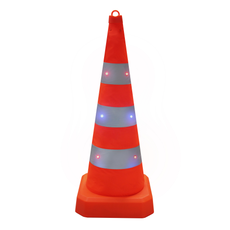 該發(fā)光路錐為L(zhǎng)ED發(fā)光伸縮路錐,高度通常為90cm,加頂燈高95cm,收納尺寸340340110mm,單重3kg。它采用300D防水防刮花牛津布材質(zhì),底座加大加寬,錐體重量集中在底部,穩(wěn)定性好,不易被風(fēng)吹倒。具備常亮、快閃、慢閃三種發(fā)光模式,可在不同場(chǎng)景下按需切換,夜間警示效果好。