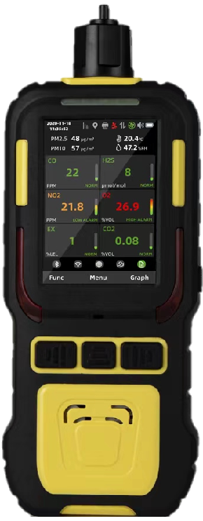無(wú)線復(fù)合氣體探測(cè)儀(以下簡(jiǎn)稱探測(cè)儀)支持二十多種智能氣體傳感器,可同時(shí)連續(xù)檢測(cè)5種氣體的濃度(氣體種類可自由組合系統(tǒng)智能識(shí)別)、粉塵濃度(PM2.5、PM10)、核輻射、溫濕度。將采集到的氣體數(shù)據(jù)、GPS位置、粉塵濃度、核輻射、溫濕度等數(shù)據(jù)通過(guò)4G上傳至監(jiān)管后臺(tái)實(shí)現(xiàn)無(wú)線管理;探測(cè)儀也可以實(shí)現(xiàn)現(xiàn)場(chǎng)實(shí)時(shí)數(shù)據(jù)一鍵打印功能。探測(cè)儀具有氣體濃度調(diào)校標(biāo)定、濃度值超限報(bào)警功能、STEL超限報(bào)警和TWA超限報(bào)警,一旦設(shè)備采集數(shù)據(jù)濃度值超限,設(shè)備立即開啟聲光振動(dòng)報(bào)警進(jìn)行警示,并將此時(shí)數(shù)據(jù)同步上傳至平臺(tái)??蓪⒍嗯_(tái)探測(cè)儀的監(jiān)測(cè)、監(jiān)控信息上傳,并建立特殊作業(yè)場(chǎng)所多功能監(jiān)測(cè)監(jiān)控系統(tǒng)平臺(tái),保障作業(yè)人員的安全。采用新一代主流外觀設(shè)計(jì),美觀耐用。