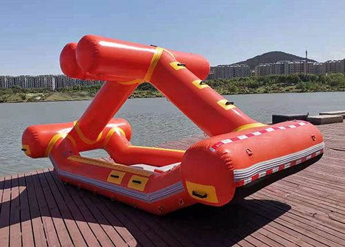 2. ★高處救援:2名成年人站在自扶正激流救生艇頂部,未見(jiàn)頂部氣柱明顯變形和傾倒。