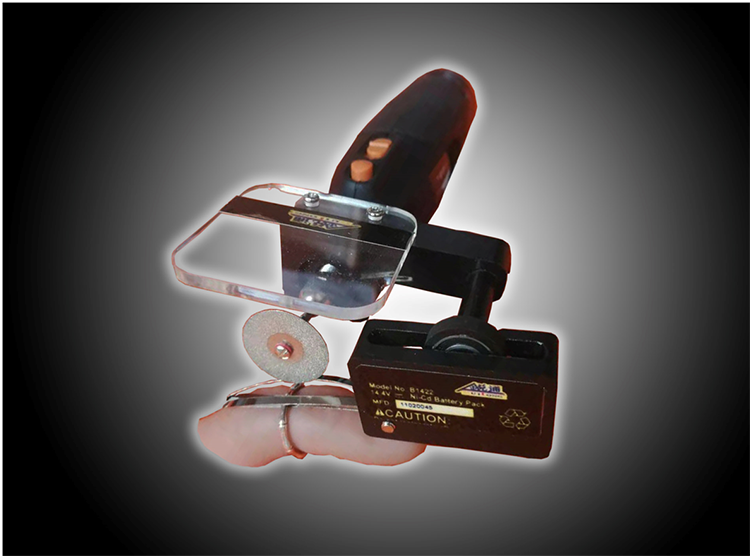 指環(huán)切割器是便攜式戒指指環(huán)剪切破除輕型破拆工具裝置,采用電動、手動等多種工作方式破拆摘除戒指環(huán)。操作簡單安全快捷,不會傷到手指,可切割不銹鋼、鐵、金、銀、銅、鋁、玉、瓷、玻璃及復(fù)合材料等。